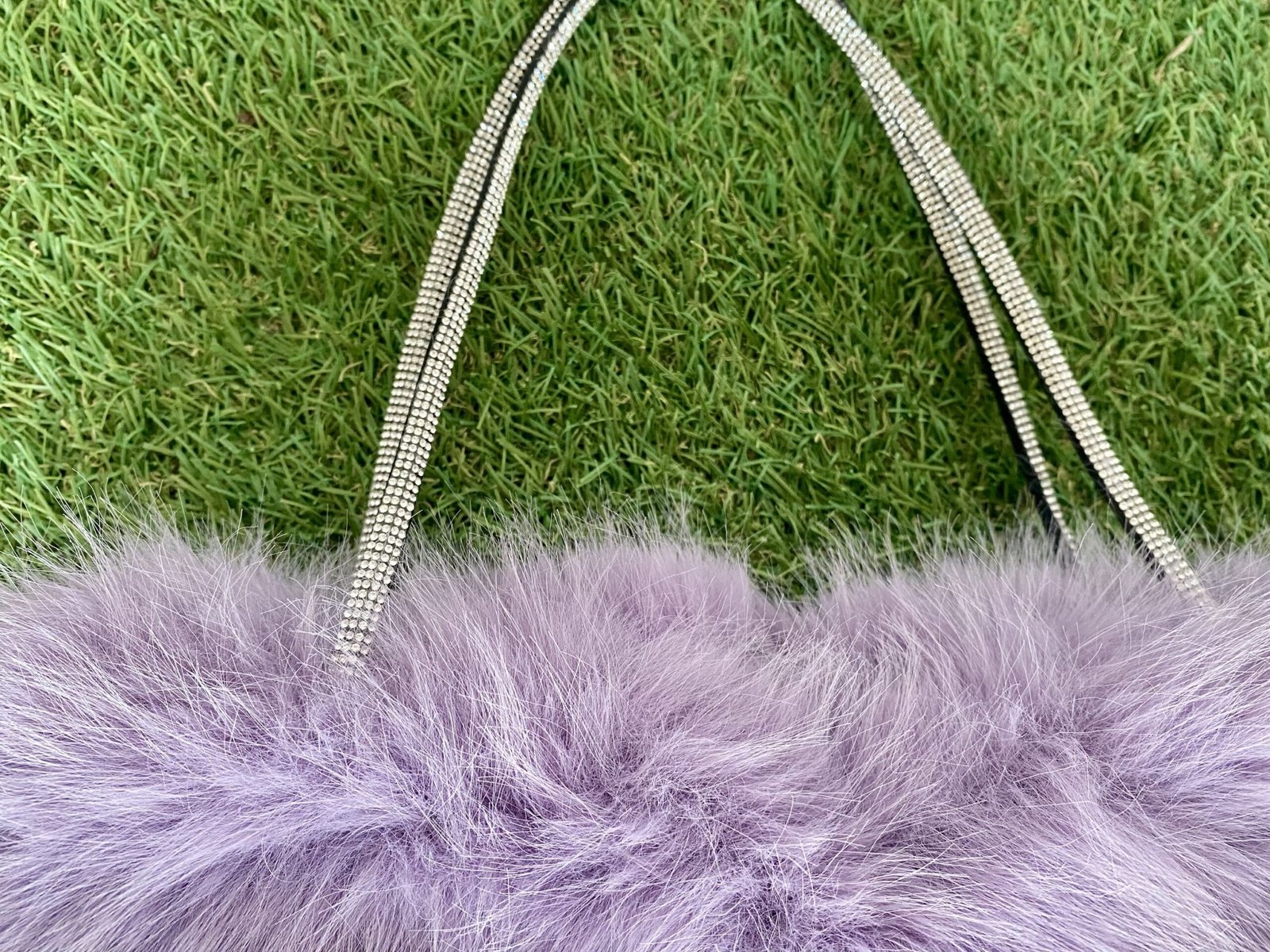 Bolso pelito malva con asa de brillo también incluida correa larga