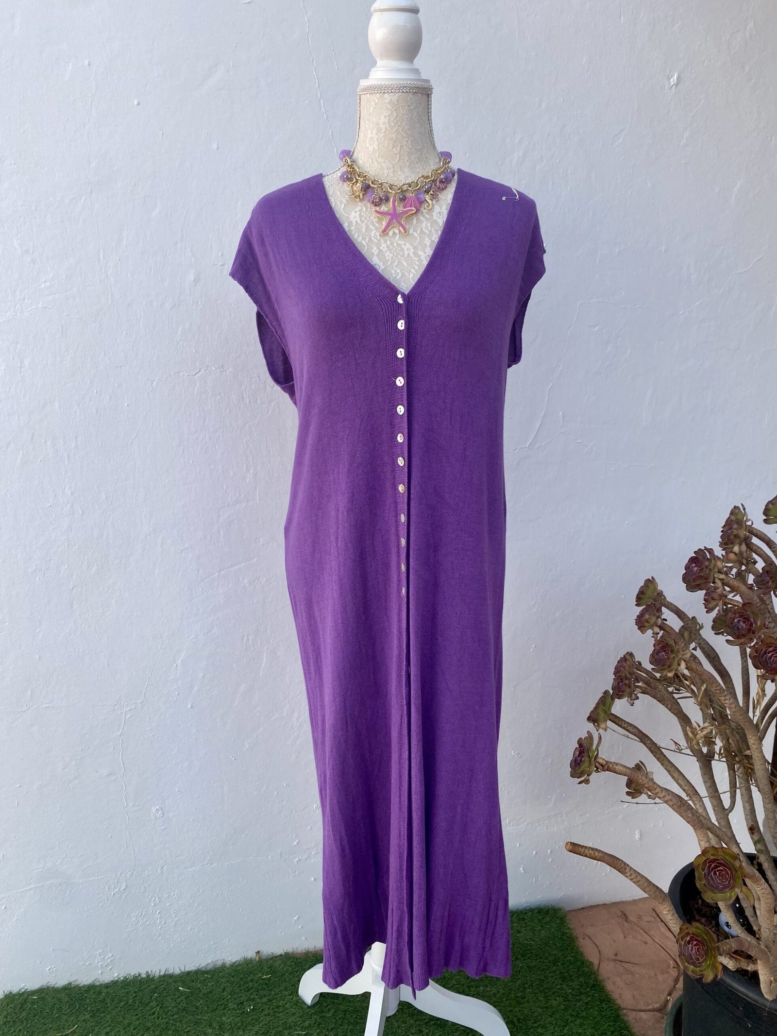 Chaleco o vestido abotonado de punto finito. Talla única , talla de la 36 a la 42 abrochado y hasta la 46 en tipo chaleco.
