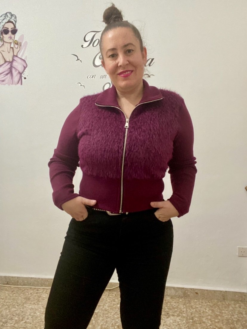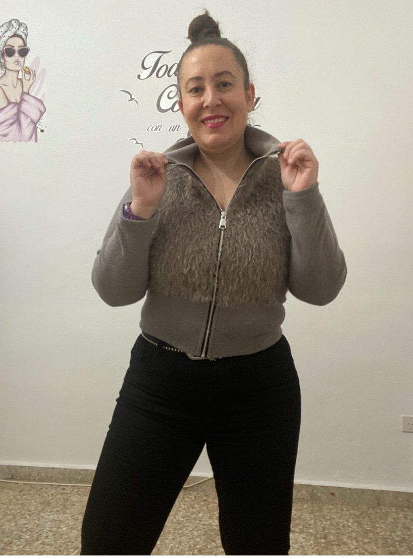 Chaqueta punto combinada con pelito, talla única va desde la 36 a la 40