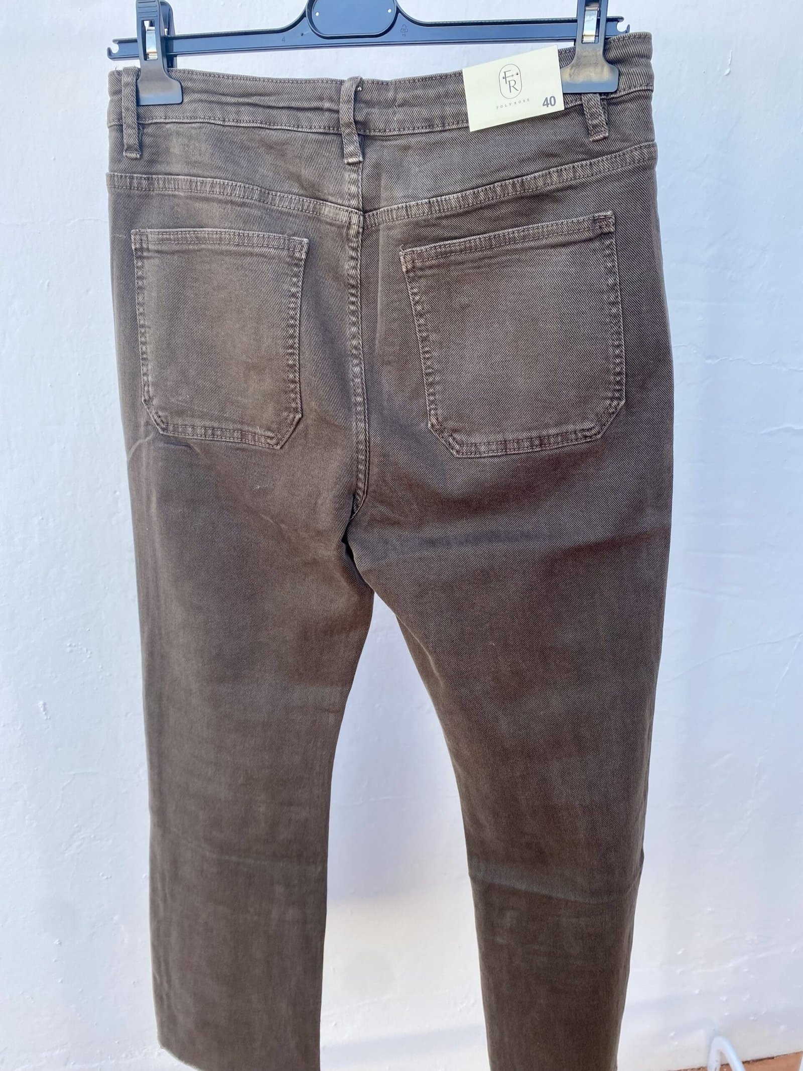 Vaquero color café. Se aconseja coger una talla menos de la que se lleva.