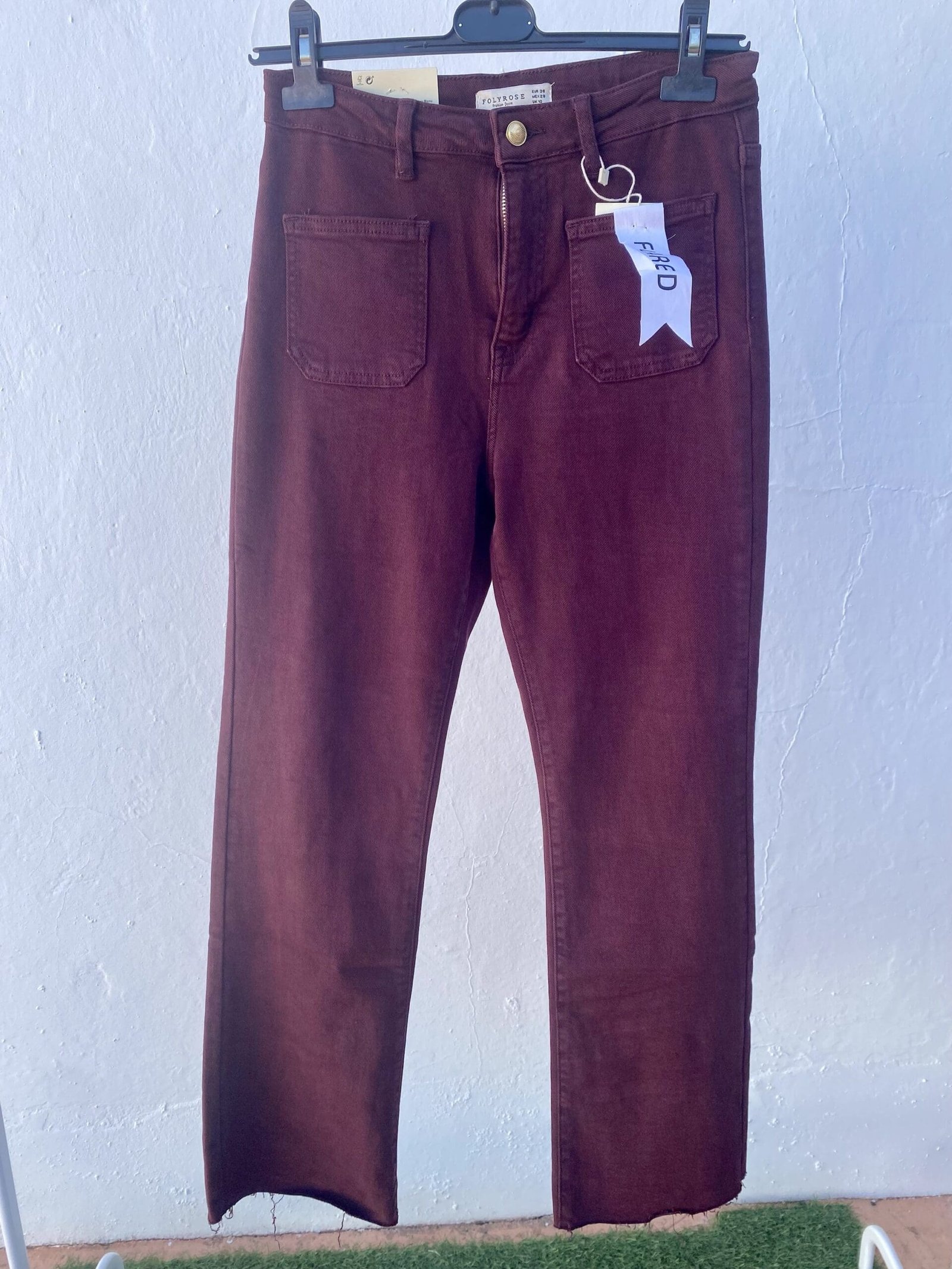 Vaquero Burdeos con cremallera y bolsillos delanteros , tienen bastante elastan por lo que se aconseja coger una talla menos